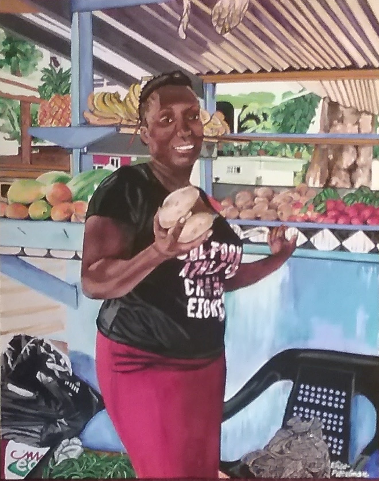 The resourcefulness and creativity of each and every one of the Jamaicans that I have met moved me to want to capture it all on canvas. Jerk chicken, as much as any other thing Jamaican, epitomizes the zest for life that I see and feel when I am there and this moves me so.
